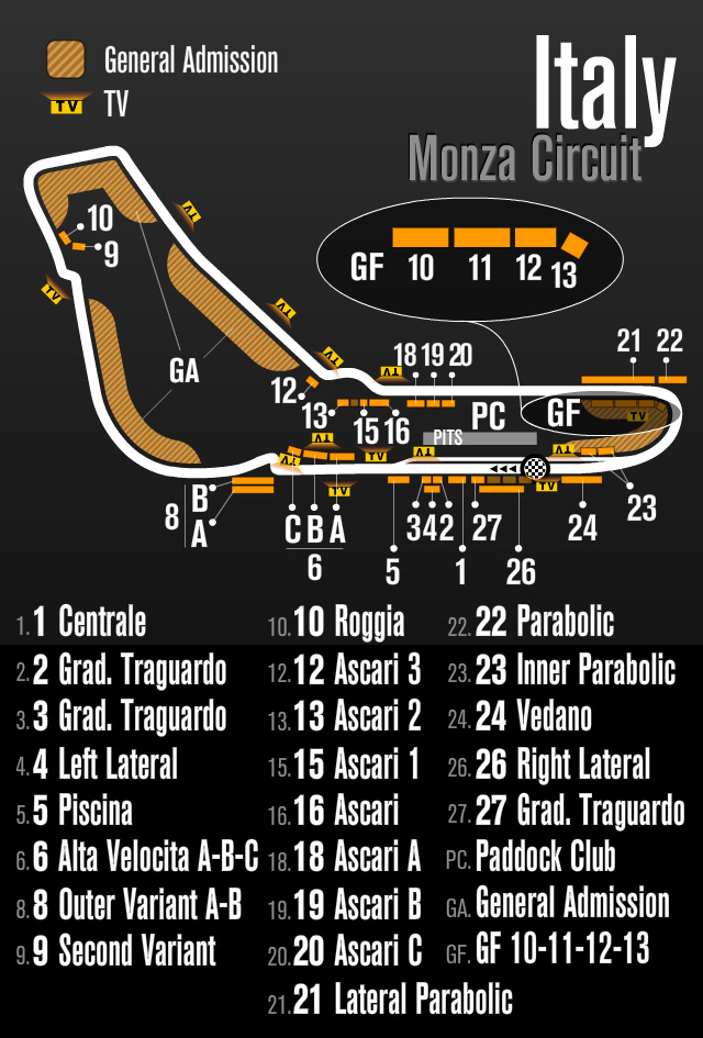 Sochi Autodrom 23 - 26 Sept. Für den atemberaubenden Grand Prix der Formel 1 von Monza sind bei Grand Prix Tours auch jetzt wieder Eintrittskarten verfügbar. Kaufen Sie F1 Tickets für den F1 Italien Grand Prix Autodromo Nazionale Monza online.