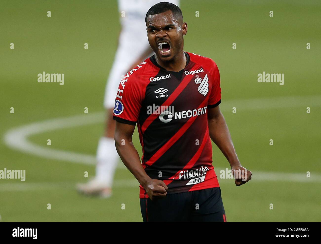 Curitiba Brasilien August 2021 Nik O Do Athletico Paranaense Feiert Die Wertung Wahrend Athetico Und Ldu Von Ecuador Im Ruckspiel Des Viertelfinales Der Copa Sudamericana In Der Arena Da Baixada In Curitiba Pr